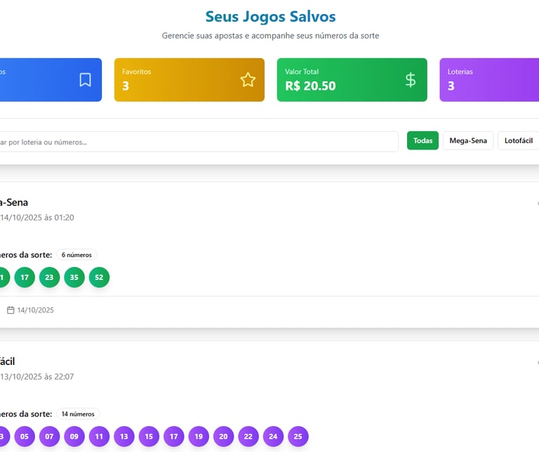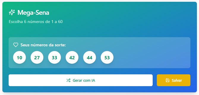 Gere combinações únicas com IA, economize tempo e acompanhe resultados em tempo real. Jogue com inteligência, não com sorte.